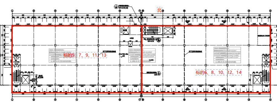 二號(hào)廠房三層至七層結(jié)構(gòu)與二層相同不予贅述,標(biāo)的對應(yīng)樓層如下圖: